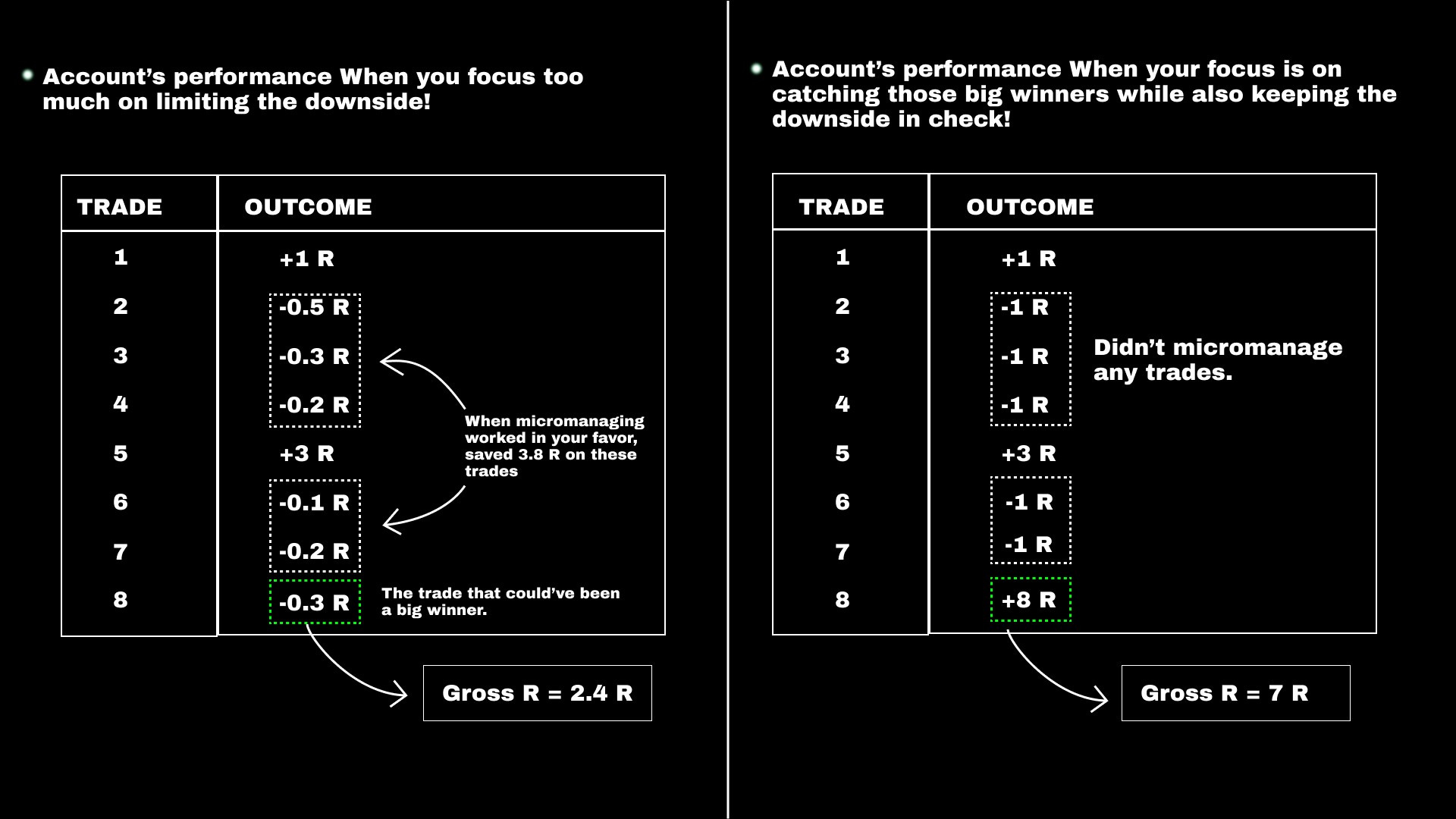 As I mentioned earlier, every trading system is unique, and the key is to identify the recurring mistakes that have been limiting your expected results. This introspection can only be achieved by delving deep into your database and understanding your trading intricacies. It's not about avoiding losses at all costs but about maximizing your potential gains while maintaining a calculated risk management approach.